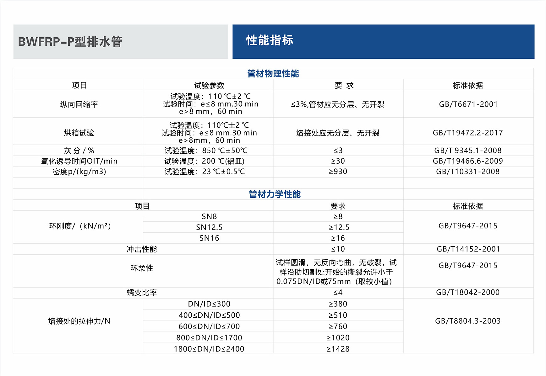 BWFRP-P型排水管介紹